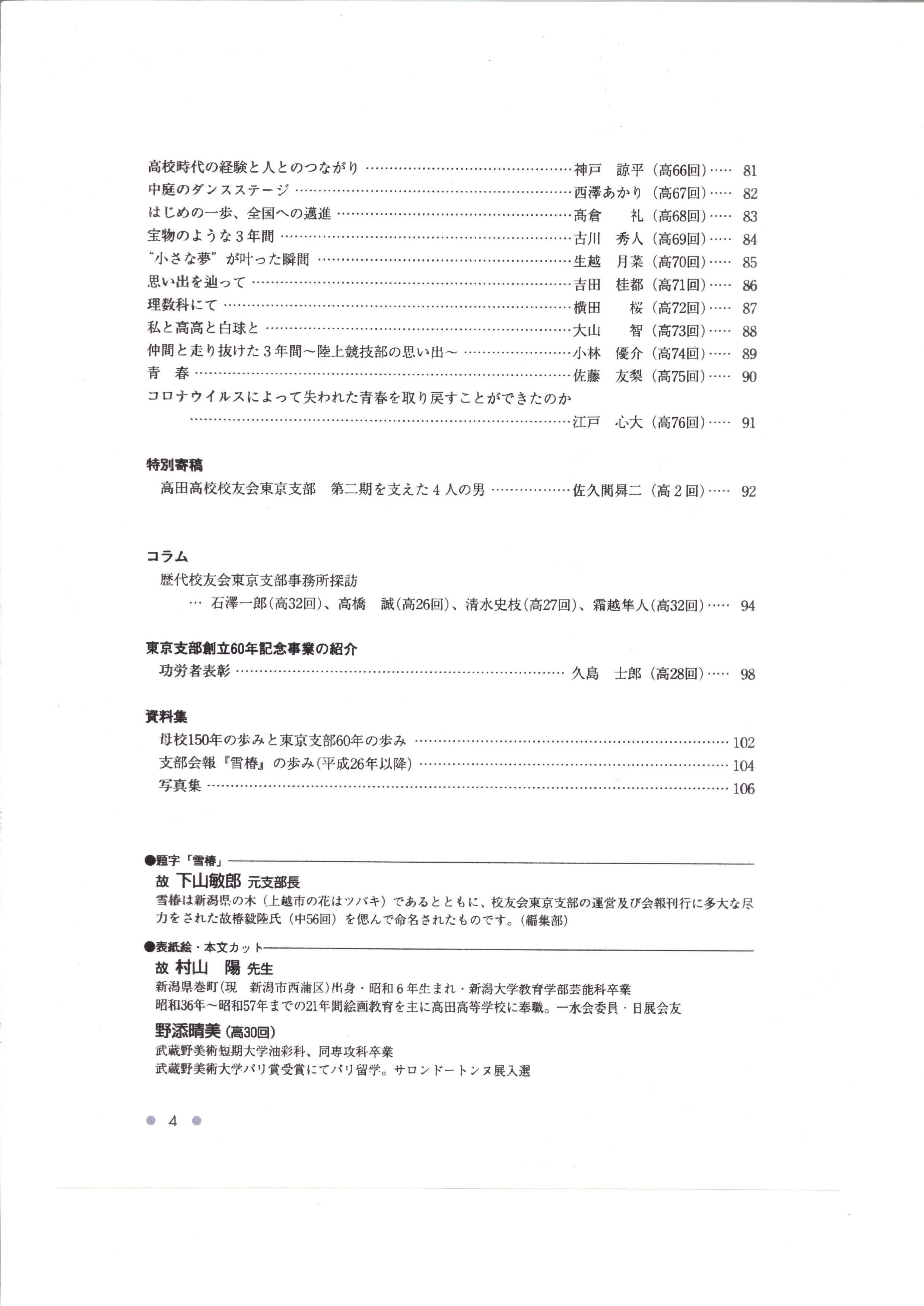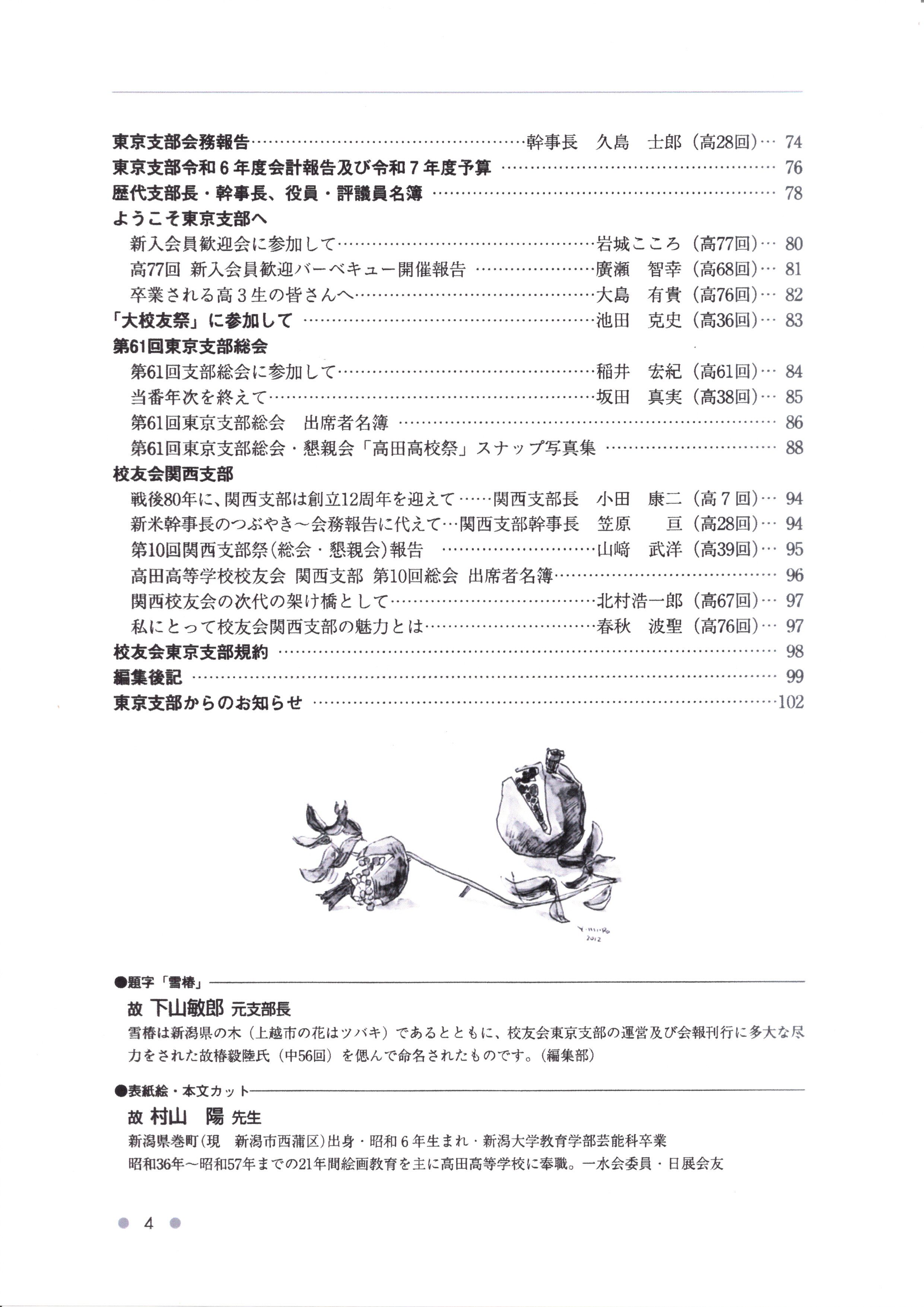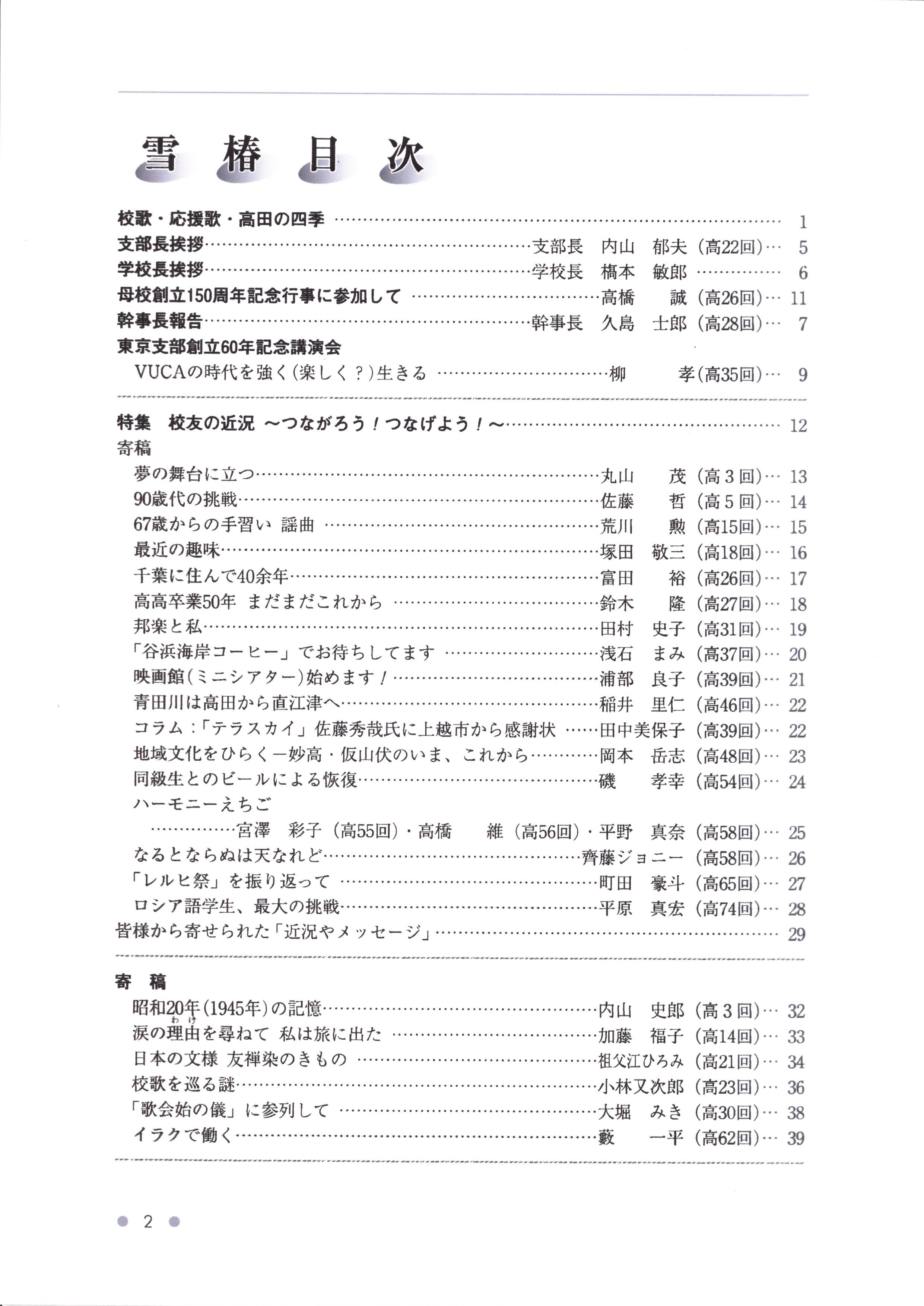 <最近の支部会報『雪椿』の目次>